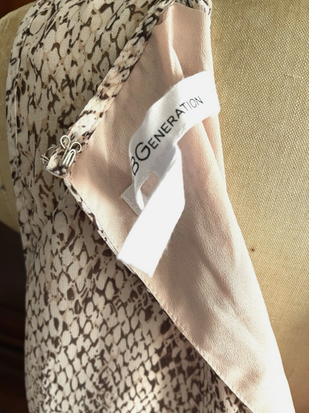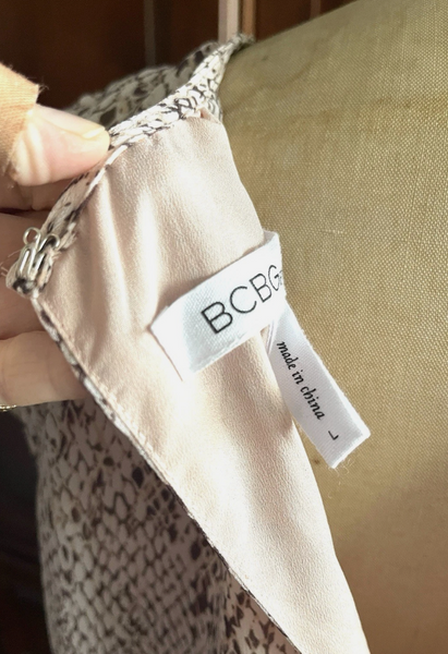 Bcbg Maxazria Snake Print Ruffle Trim Dress Size L. Condition is Pre-owned - Excellent. Shipped with USPS Ground Advantage.