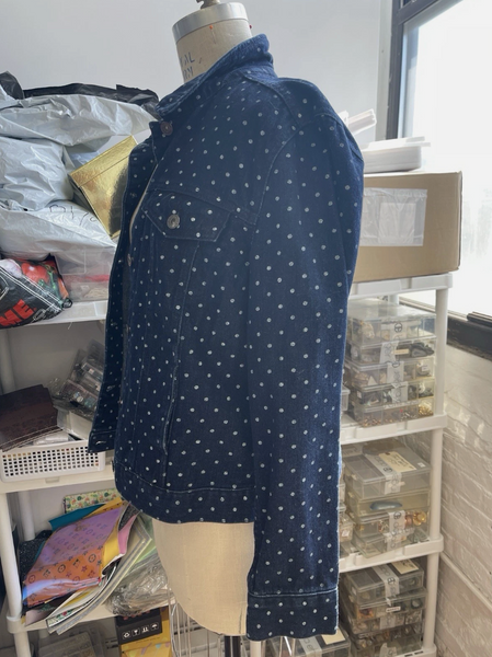 Custom Handmade Embellished Denim Jacket Beaded Velvet Rose Golden Girls sz XL