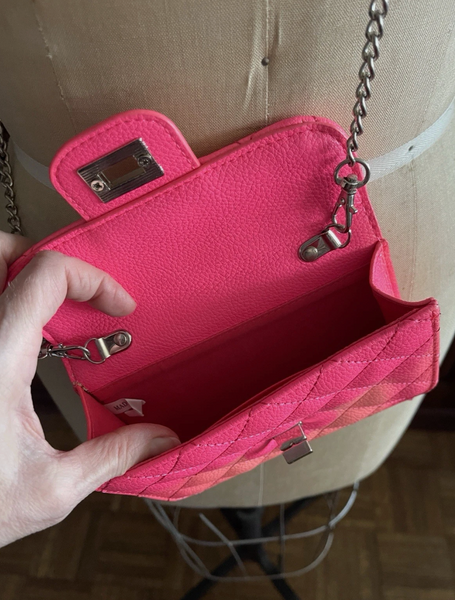 Pink Two Tone Mini Faux Leather Quilted Crossbody Mini Bag. Shipped with USPS Ground Advantage.