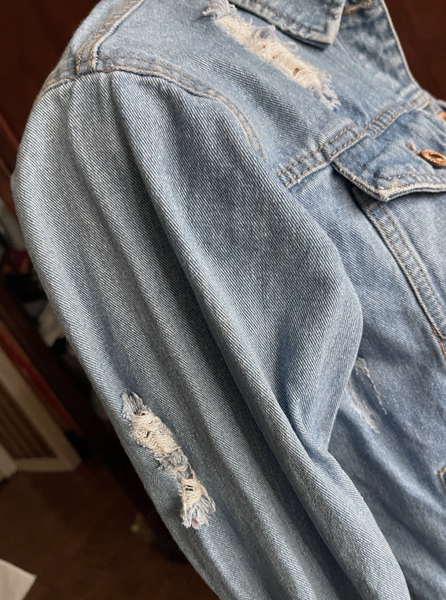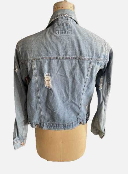 Women’s FOREVER 21 Distressed Denim Jacket Sz Small. Condition is Pre-owned - Excellent. Shipped with USPS Ground Advantage.